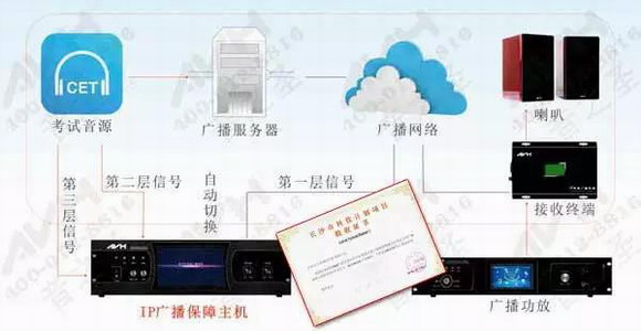 中考、高考、學(xué)考作為學(xué)校最重要的考試,外語聽力的播放至關(guān)重要,因此,我們所選用的AVH品牌廣播產(chǎn)品生產(chǎn)廠家,經(jīng)過多年的研發(fā),結(jié)合多年的經(jīng)驗(yàn),專門針對(duì)學(xué)校的外語聽力廣播播放,開發(fā)出了一款具有多層實(shí)時(shí)保障的IP廣播保障主機(jī);該款主機(jī)為全國首創(chuàng),該項(xiàng)技術(shù)通過了:長(zhǎng)沙市科技局的驗(yàn)收,并取得了驗(yàn)收證書。