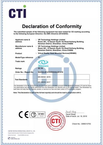 為進(jìn)一步打開5G時(shí)代后VR消費(fèi)級市場份額,經(jīng)過18個(gè)月潛心研發(fā),3Glasses于2019年4月10日推出新一代消費(fèi)級超薄VR眼鏡3GlassesX1。與公司其他產(chǎn)品線如D系列、S系列不同,這款主打家庭娛樂影音以及個(gè)人消費(fèi)版本的X系列或?qū)⒊蔀槟壳罢麄(gè)VR行業(yè)可量產(chǎn)的最輕薄產(chǎn)品,重量可達(dá)同類產(chǎn)品重量的三分之一。目前,3GlassesX1已通過美國FCC認(rèn)證及歐盟CE認(rèn)證,為拓展海外市場奠定基礎(chǔ)。