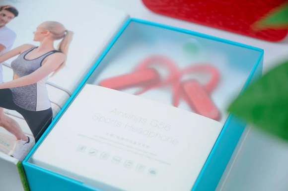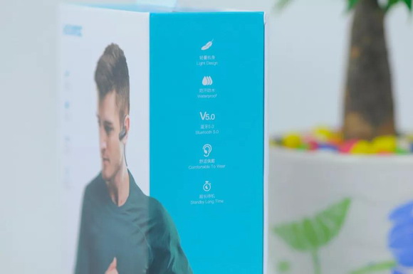從外包裝的信息中可以看到Airwings的幾個主要特點:輕便機身、防水防汗、內(nèi)置藍牙5.0模塊、佩戴舒適、超長時間待機等。