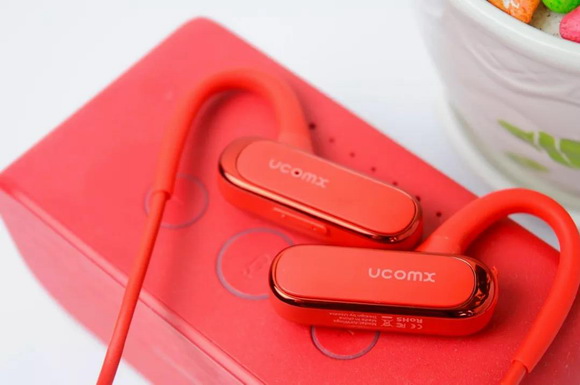 紅色款是個人比較喜歡的顏色,年輕有活力讓人有眼前一亮的感覺。模塊正面印有“UCOMX”的Logo字樣,反光亮條挑邊,科技感十足,由于沒有了入耳式耳機的前腔結(jié)構(gòu)使得整個耳機的尺寸和體積都大幅下降,Airwings僅重17.7克,日常佩戴幾乎沒有負重感。