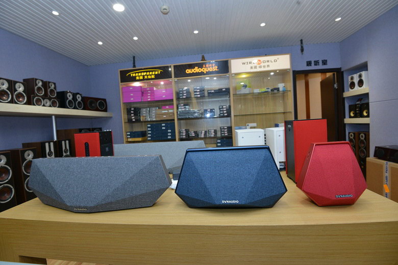 先說說丹拿這邊,門口桌面特別明顯的丹拿最新的MUSIC音箱,別看桌子不大,但全系列的MUSIC都齊全了。