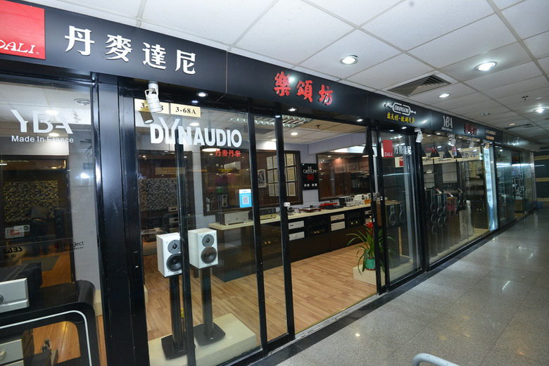 說實話,另外在這里開店的,有很多也是線上線下一起做的。我們要說的樂頌坊,就在這一層里面,3-67A、3-67B、3-68A、3-62 4間店鋪。樂頌坊兩邊,丹拿DYAUDIO、達尼的門頭格外顯眼。