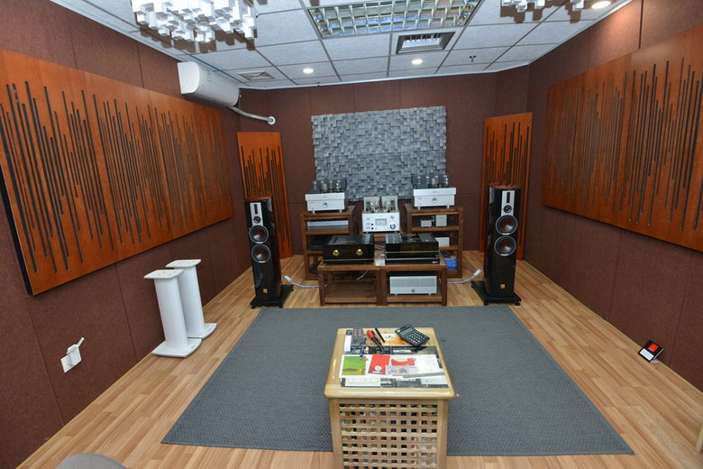 說完走廊,該說具體的聽音室了。這邊3間店鋪也是3間試聽間。其中一間是以丹麥達尼OPTICON歐典系列音箱+麗磁膽機+英國ONIX等為主的開聲設(shè)備。