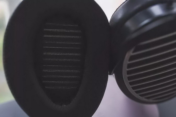 作為一款高端的平板耳機(jī),ANANDA-BT沿襲了上一代優(yōu)秀的舒適耳罩以及混合頭梁結(jié)構(gòu)。整體骨架為鋁合金材質(zhì),結(jié)合雙層頭帶結(jié)構(gòu)比起一般單層頭戴擁有更小的壓迫力,通過多檔位調(diào)節(jié)還是非常適合長期佩戴。耳罩外側(cè)為皮革材質(zhì),內(nèi)側(cè)為通透性布料+海綿,結(jié)合平板耳機(jī)的特性,降低側(cè)邊漏音,保證與耳膜的縱向聲音輸出呈現(xiàn)單一且穩(wěn)定的表現(xiàn)。耳罩外側(cè)極具辨識(shí)度的百葉窗格柵設(shè)計(jì)對(duì)于如此開放式結(jié)構(gòu)有著降低聲波向人耳反射的功能,外形如此的嚴(yán)肅和工科男也非常符合HIFI的定位。