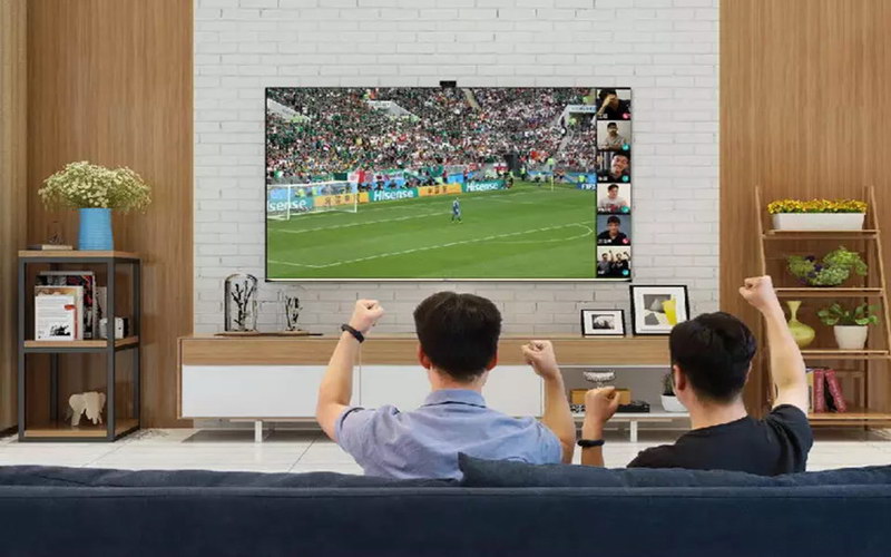 支持大屏和手機同時在線的六路視頻暢聊及共享放映廳,可以讓親友團一起追劇、一切聊球、一起暢聊。個人用戶則可以創建共享放映廳,親友團可共享影視內容,在海信云平臺上通過認證的大V也可以創建放映廳和粉絲共享精彩內容。“大屏朋友圈”生態躍然屏上。