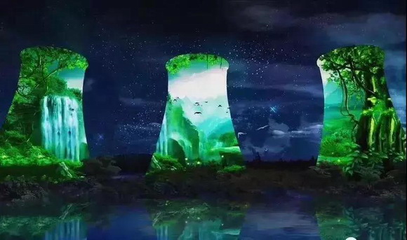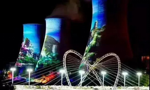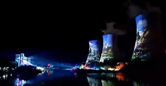 與我們看到過的或歷史古跡、或知名地標(biāo)等大多數(shù)其他戶外投影主體不同,《夢回下花園》激光秀的主要舞臺是三座巨型冷卻塔。
