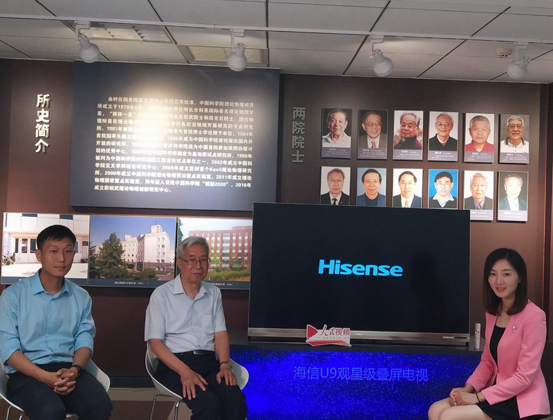 (歐陽(yáng)鐘燦院士(中)接受人民視頻采訪(fǎng))