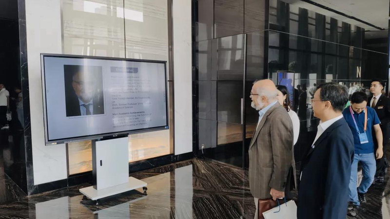 在這里,各位科技權(quán)威專家的簡歷信息通過newline會(huì)議平板的無線投屏功能清晰呈現(xiàn),他們?cè)趎ewline會(huì)議平板前駐足觀看,連連驚嘆目前中國的會(huì)議設(shè)備已經(jīng)達(dá)到了如此之高的標(biāo)準(zhǔn)。