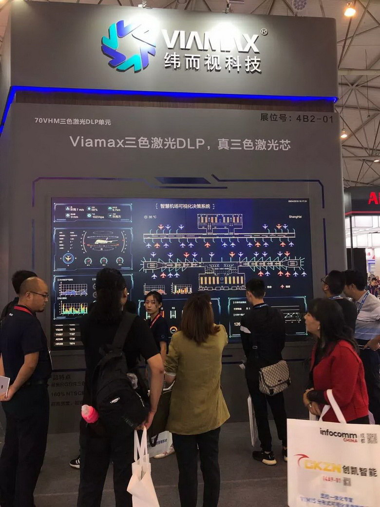 展會現(xiàn)場,Viamax(緯而視科技) 三色激光DLP顯示產(chǎn)品,吸引了現(xiàn)場眾多來自各地及各個行業(yè)領(lǐng)域的系統(tǒng)集成商、工程商、最終用戶以及各家媒體等行業(yè)精英駐足,細(xì)致垂詢,絡(luò)繹不絕。