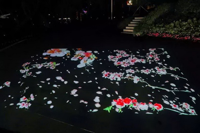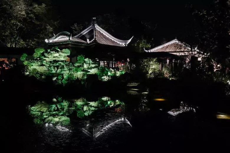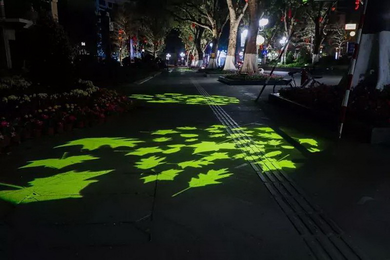 在兩極一軸中,燈光的圖案燈、投影機(jī)、水紋燈、光束燈等多種文創(chuàng)燈光燈具,也靈活運(yùn)用在新會美術(shù)館、新會人民會堂周邊、圭峰山永鎮(zhèn)山門、圭峰路、公園路、新豪景廣場,盆趣園,艇仔湖等幾大節(jié)點,下面就跟隨小編來一場“眼睛旅行”吧