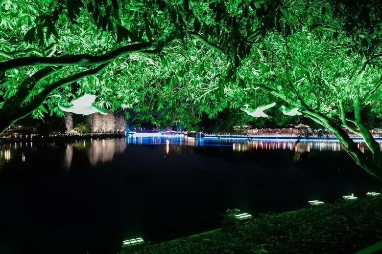 玉湖燈光秀周圍的山體、湖岸、園林、橋梁、亭臺樓閣,也按最佳觀賞點來確定亮度的層次劃分,對公園、廣場、周邊建筑、橋梁、湖岸、雕塑等進(jìn)行了全要素的亮化提升,給予市民一個全新的夜景體驗。