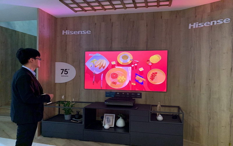 根據(jù)中怡康公布的數(shù)據(jù),8月份,55吋以上彩電份額占比超過(guò)76%。而海信近期針對(duì)大屏市場(chǎng),也是接連祭出大招:7月發(fā)布全球首臺(tái)65吋疊屏電視、8月發(fā)布搭載Hi Table系統(tǒng)的社交電視、9月在柏林IFA展出屏幕發(fā)聲激光電視、85吋8K雙屏電視等產(chǎn)品。