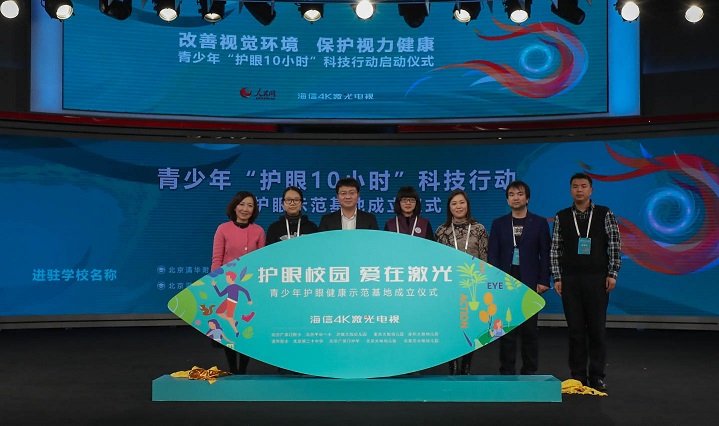 近日,海信和人民網(wǎng)在北京共同發(fā)起“青少年護(hù)眼10小時(shí)”科技行動(dòng),呼吁全社會(huì)關(guān)注青少年視力健康,倡導(dǎo)采取科技先行、科學(xué)護(hù)眼的有效舉措改善青少年視力健康。作為落實(shí)此次行動(dòng)的第一步,海信4K激光電視進(jìn)駐北京廣渠門(mén)中學(xué)、清華附小、大地幼兒園等十所校園,建立“青少年護(hù)眼示范基地”。