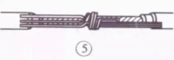 接著把處于緊挨平臥前鄰近的2根芯線折成90° ,并按步驟⑤ 方法加工。
