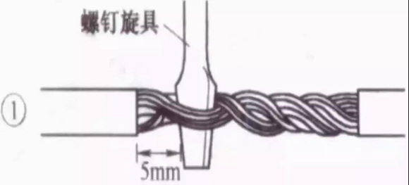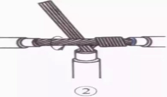 將支路芯線的線頭與干線芯線十字相交,在支路芯線根部留出5mm,然后順時(shí)針方向纏繞6~8圈后,用鋼絲鉗切去余下的芯線,并鉗平芯線末端。