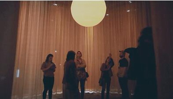 紗幕圍繞中間發(fā)光的橙色“太陽”不停飄蕩,人們可以進入其中與之互動。