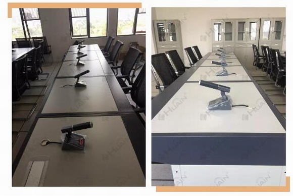 公安局會議廳主要用于部門內(nèi)部會議、重要培訓學習以及任務安排統(tǒng)籌會議,從智能便捷出發(fā),同時會議桌臺面也需要整潔,該會議廳選用了HUAIN華音——雙振膜全數(shù)字觸控式會議產(chǎn)品----HY-6320S系列。