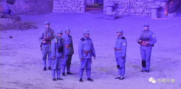 千溝萬壑、炮聲隆隆、燈光閃爍……演出剛一開始,宛若真實的場景就把觀眾帶回到了抗戰(zhàn)那段崢嶸歲月。據(jù)了解,《太行山抗戰(zhàn)》大型實景劇以抗日戰(zhàn)爭為背景,賀進、趙湘故事為原型,再現(xiàn)了劉鄧大軍領導的八路軍將士與當?shù)厝嗣裨⊙獖^戰(zhàn),共同抗擊日寇的感人故事。整場演出利用現(xiàn)代化聲光電相結(jié)合的方法,現(xiàn)場效果氣勢恢宏,令人熱血沸騰。