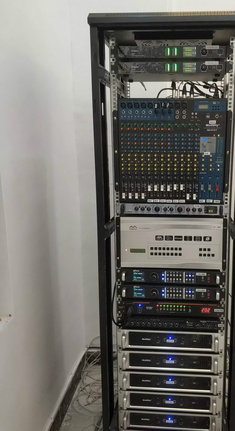 通過AV1000M-Ⅱ內(nèi)置AFC反饋嘯叫消除,對(duì)中新內(nèi)的房間均衡器對(duì)房間的聲場(chǎng)做詳細(xì)的調(diào)整,彌補(bǔ)房間聲場(chǎng)的不足。再加上系統(tǒng)的電平統(tǒng)一調(diào)整合適的范圍內(nèi),保證了系統(tǒng)的有足夠的傳聲增益,有效控制由話筒造成的嘯叫問題。