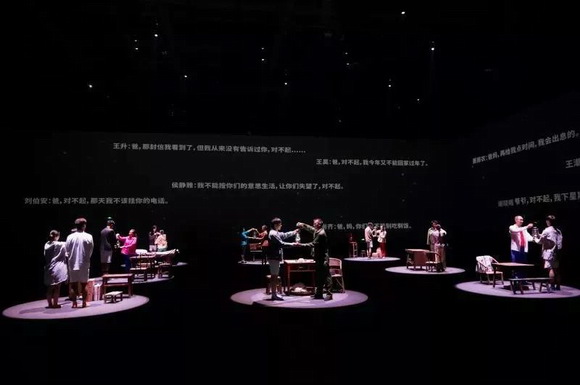 “云之中”園林劇場,由白色礫石和白色水霧組成云海,瓦片組成一座座屋頂,如同云海漫過屋頂,演員漫步其中,與觀眾相遇;