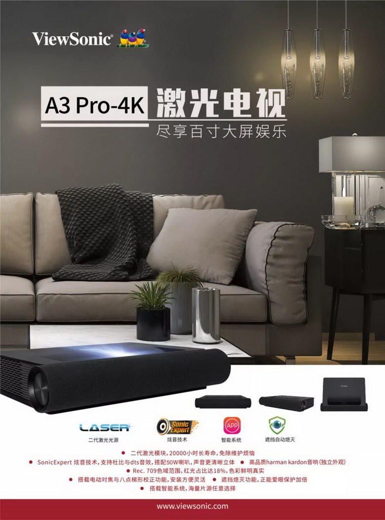優(yōu)派“虹”A3 Pro-4K激光電視官方零售價為35999元。