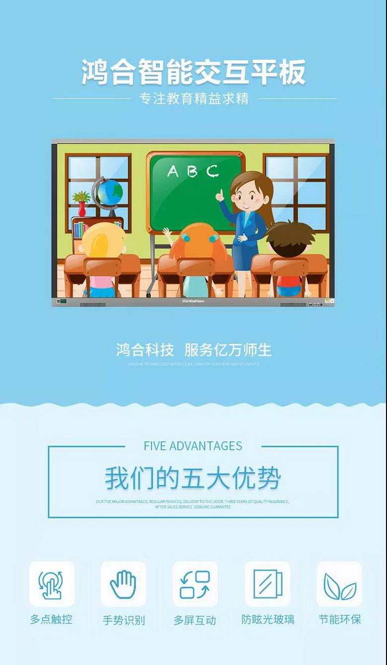 鴻合科技,國內(nèi)教育信息化重要企業(yè),智能交互設備領域知名品牌。自公司成立以來始終堅持“自主創(chuàng)新 永續(xù)發(fā)展”的戰(zhàn)略目標,目前擁有國內(nèi)技術力量雄厚、綜合生產(chǎn)能力強的數(shù)字多媒體交互產(chǎn)品以及現(xiàn)代化教育設備生產(chǎn)基地。