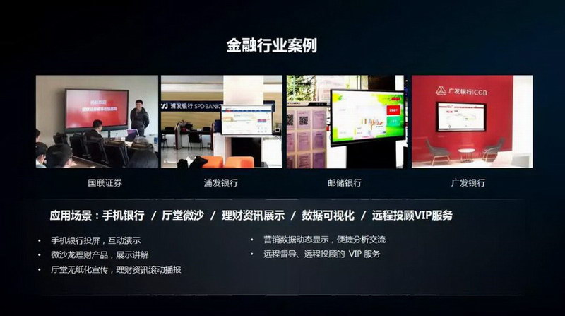 尺寸從55到100英寸多尺寸可選,在諸多領(lǐng)域,如企業(yè)、教育、金融等方面有著豐富的會議解決方案、案例與經(jīng)驗。在眾多領(lǐng)域中,萬寶的產(chǎn)品對提高企業(yè)辦公效率、促進團隊高效協(xié)作、提升企業(yè)形象起到積極作用。