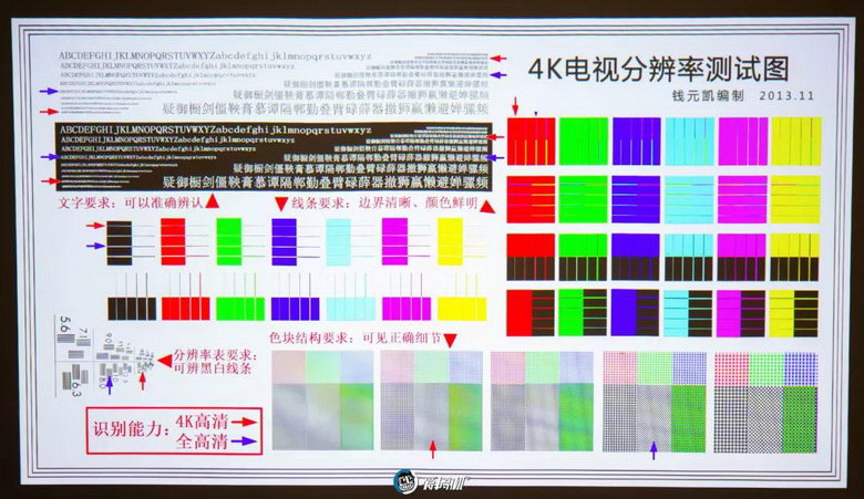 這里需要說明下,實拍圖和實際場景觀感的效果可能會略有偏差,在分辨率測試圖中,總結(jié)就一個字——銳,是真的銳,邊緣的小字以及各種細節(jié),都非常清晰,倘若你之前看的是 1080P 的投影儀,看到 4k 之后,會有很明顯的差距,這種感覺就像讓一個近視者從沒帶眼鏡到帶上眼鏡的差距,不比不知道,一比嚇一跳;在色彩還原、可視角度、影調(diào)還原層次各方面的表現(xiàn)也是屬于現(xiàn)在的主流水平,但是令人印象深刻的還是畫質(zhì),銳不可擋。