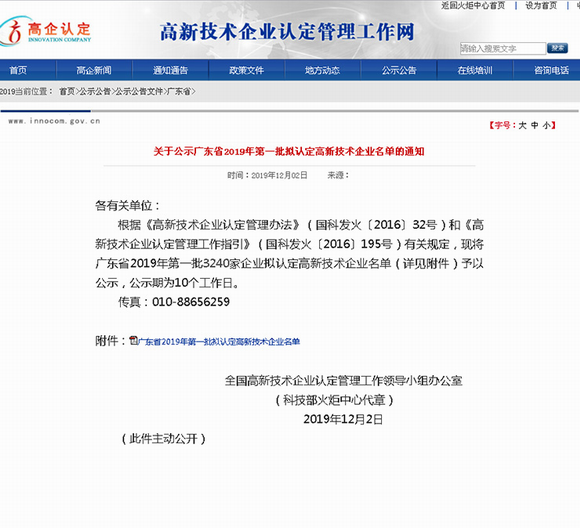 根據(jù)國家《高新技術(shù)企業(yè)認(rèn)定管理辦法》和《高新技術(shù)企業(yè)認(rèn)定管理工作指引》相關(guān)規(guī)定,廣東得勝電子有限公司被認(rèn)定為“高新技術(shù)企業(yè)”,這也是得勝公司繼2007年,2016年之后,再次獲評該榮譽稱號。近日,高新技術(shù)企業(yè)認(rèn)定管理工作網(wǎng)已公示廣東省2019年第一批企業(yè)擬認(rèn)定高新技術(shù)企業(yè)名單公示,得勝電子榜上有名。