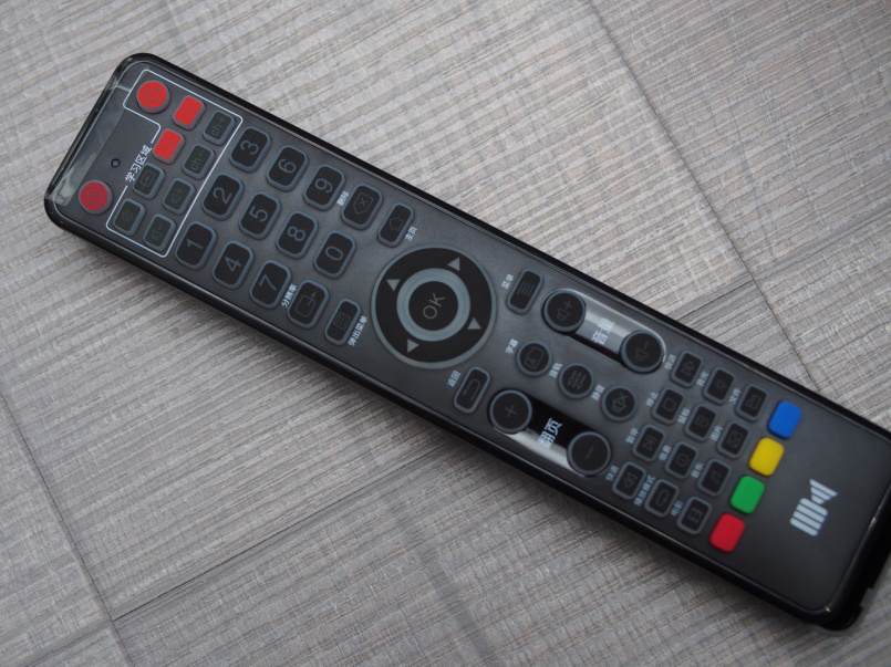 背光藍(lán)牙遙控器,這個(gè)體積比較大,但握持手感還不錯(cuò),字幕,音軌的常用功能也有獨(dú)立按鍵,還支持學(xué)習(xí)功能,只是需要3節(jié)AAA電池。