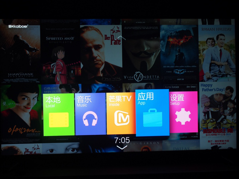 開博爾的這套UI已經(jīng)用了好多代機(jī)型了,主界面是5個(gè)常用的功能 ,往上翻是海報(bào)墻系統(tǒng),往下是快捷菜單,用起來很容易入手。