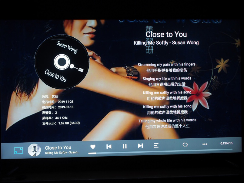 對(duì)于單軌的DSD歌曲和SACD的原盤DSD支持也非常完善,據(jù)官方參數(shù)是支持DSD512的,可惜我手上的基本上都是DSD64的,播放起來無問題。