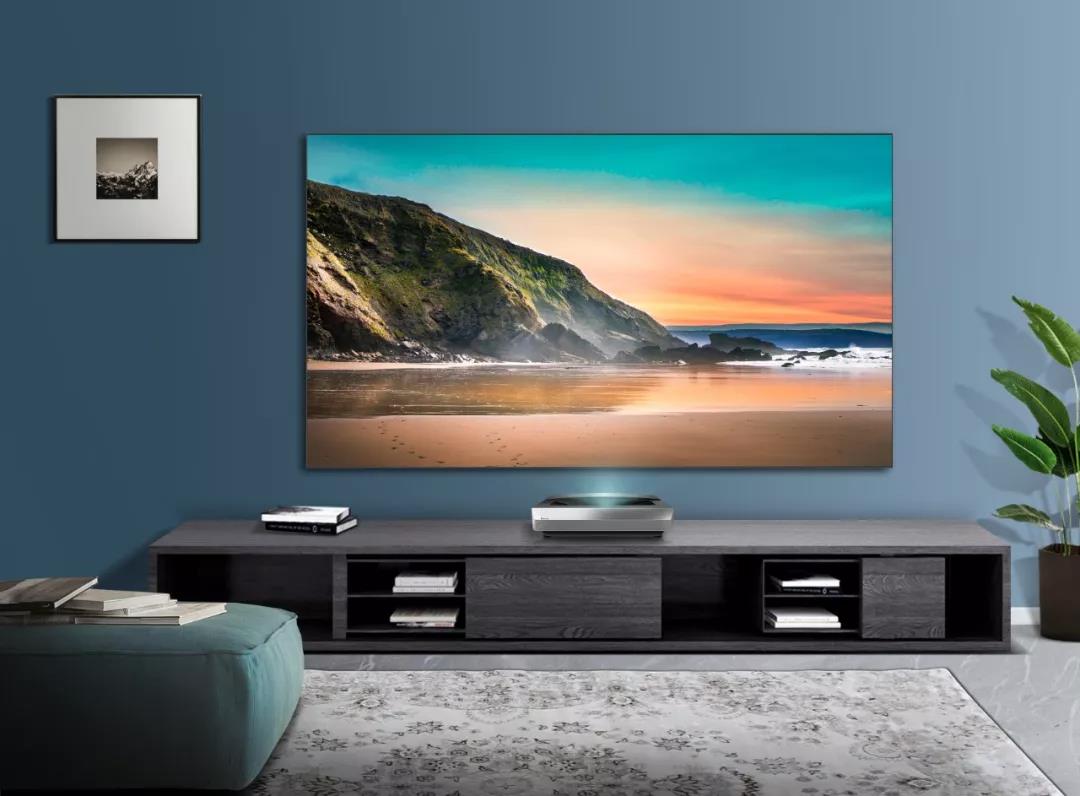 將經(jīng)典藍融入家居裝飾將會為室內(nèi)注入創(chuàng)意,通過獨特的色彩和色調(diào)組合改變空間氛圍。一款獨特的單品,能夠讓空間煥然一新,就像海信激光電視,簡約大方的外觀,超大屏顯示,擺放在空間,瞬間讓空間更高級。