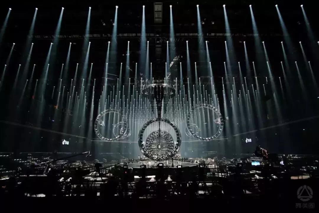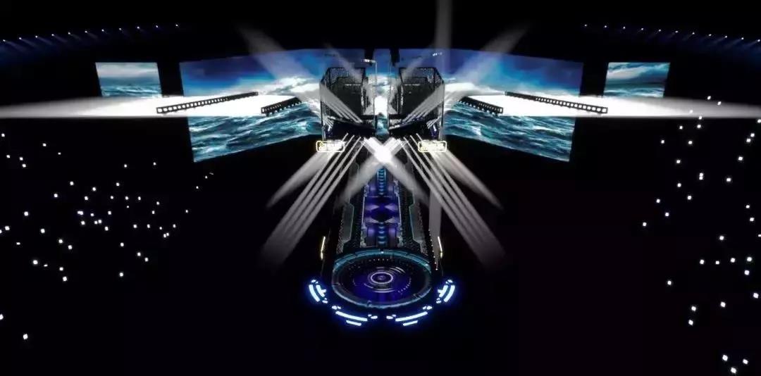 江蘇衛(wèi)視跨年舞臺,打造了一個科技感十足的水滴形舞臺,采用360度全景“四面臺”舞美,極具新意。巨型水滴形裝置共12個圓形結(jié)構(gòu),每個結(jié)構(gòu)都安裝有舞臺光束燈及效果燈帶,所有結(jié)構(gòu)由數(shù)控機(jī)械控制,可以變化出各種造型,整體視覺好似一艘即將啟航來自太空的飛船。