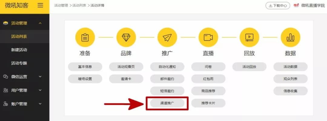 微吼知客自上線以來,一直致力于融合大數(shù)據(jù)+AI,為企業(yè)抬升營銷增長空間。2020年開年,微吼知客即上線新版本。新版本在拉新獲客、盤活用戶、整合數(shù)據(jù)方面繼續(xù)下功夫,新增了渠道管理功能,并深度切入微信生態(tài),進行更深度的數(shù)據(jù)融合。市場環(huán)境,對企業(yè)提出精細化運營的要求,微吼知客也精益求精,從趨勢與落地上,全面支持企業(yè)客戶需求。