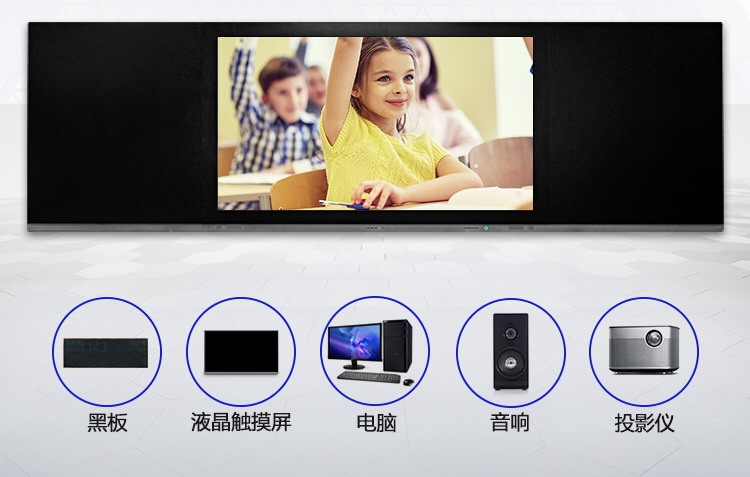 它集液晶電視、電腦、音響、投影教學(xué)設(shè)備等功能一體,在功能上涵蓋了觸控互動(dòng)、多媒體教學(xué)和粉筆書(shū)寫(xiě),將傳統(tǒng)教學(xué)黑板和可感知的互動(dòng)黑板無(wú)縫對(duì)接。