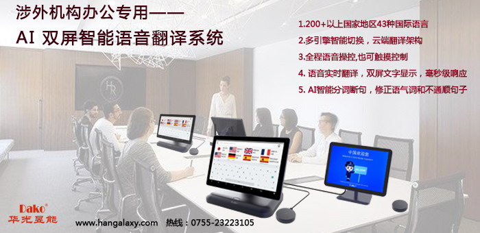 那么,結(jié)合當(dāng)前的人工智能,有沒有在商務(wù)活動(dòng)中能被廣泛運(yùn)用的AI翻譯機(jī)呢?當(dāng)然有啦。由深圳華光昱能科技有限公司Dako品牌隆重推出的AI智能語音翻譯機(jī),就是基于云端的多引擎、多語種的智能翻譯機(jī),專供涉外機(jī)構(gòu)辦公專用。