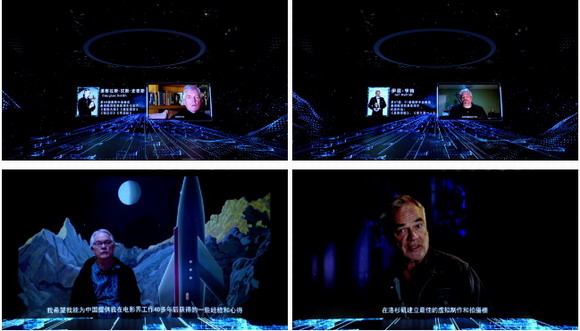 活動(dòng)現(xiàn)場(chǎng),榮獲奧斯卡最佳視覺(jué)效果獎(jiǎng)得主的Ian Hunter(伊恩·亨特)、Douglas Smith(道格拉斯·漢斯·史密斯),以及好萊塢⾼科技交互式攝景控制系統(tǒng)之⽗Joe Lewis (喬 路易斯),美國(guó)電視界的最高獎(jiǎng)項(xiàng)“艾美獎(jiǎng)”提名者Sam Nicholson (山姆·尼科爾森),在數(shù)字化沉浸式拍攝系統(tǒng)DRS-LED的輔助下,他們分別就各自在美國(guó)電影拍攝中對(duì)LED拍攝技術(shù)的應(yīng)用及影視拍攝技術(shù)的發(fā)展與變革進(jìn)行了精彩分享,Douglas Smith、Ian Hunter還對(duì)德火科技、靈山、Stargate、General Lift的四方合作表示期待與祝福。