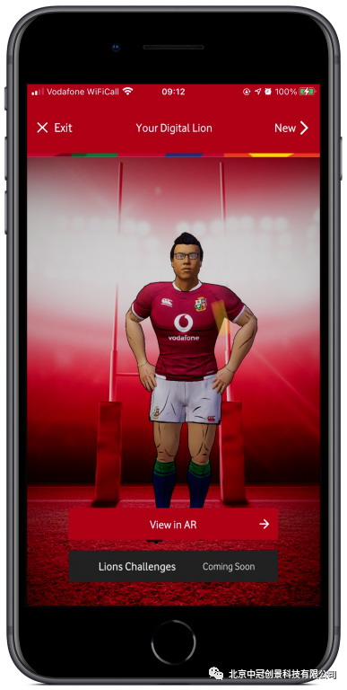 中國(guó)視聽(tīng)網(wǎng)(m.fjypw.com) > 行業(yè)資訊 > 視聽(tīng)信息(其它) > MVN Animate應(yīng)用:英國(guó)獅隊(duì)與沃達(dá)豐設(shè)計(jì)AR虛擬形象
