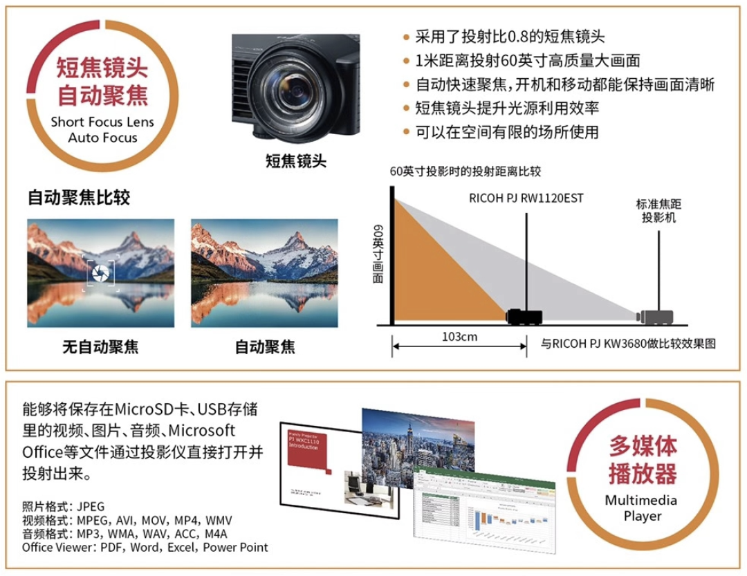 第二,產(chǎn)品創(chuàng)造性的將短焦應(yīng)用于LED超便攜投影設(shè)備,產(chǎn)品集成程度已經(jīng)極高。但是,理光依然能夠在機(jī)身內(nèi)部集成“自動(dòng)對(duì)焦”功能,實(shí)現(xiàn)開機(jī)迅速自動(dòng)對(duì)焦,畫面瞬間清晰,不需要額外調(diào)試,帶來應(yīng)用速度的進(jìn)一步提升。