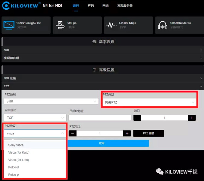 另外,如果您現(xiàn)場(chǎng)沒(méi)有配置千視NDI解碼器,您也可以直接通過(guò)千視NDI編碼器的WEB管理后臺(tái)發(fā)送PTZ指令,同樣可以通過(guò)串口,或網(wǎng)絡(luò)來(lái)連接控制前端的PTZ相機(jī)。