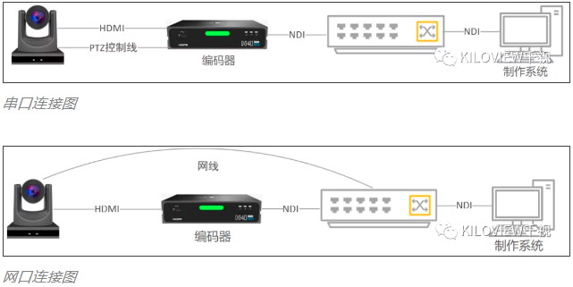 如果現(xiàn)場(chǎng)NDI制作監(jiān)看系統(tǒng)可以發(fā)送NDI PTZ信號(hào),如NewTek Tricast系列、NDI Monitor等,您只要選擇配置千視NDI編碼器來(lái)實(shí)現(xiàn)PTZ 控制功能。比如對(duì)于串口PTZ相機(jī),通過(guò)串口線連接NDI編碼器和PTZ相機(jī);對(duì)于網(wǎng)絡(luò)PTZ相機(jī),僅需將該P(yáng)TZ相機(jī)接入相同局域網(wǎng)即可,PTZ控制如此簡(jiǎn)單高效,借助NDI網(wǎng)絡(luò),無(wú)需額外布線。