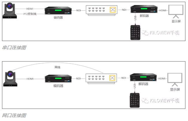 千視NDI解碼器(可擴(kuò)展控制鍵盤(pán))+千視NDI編碼器+PTZ相機(jī)