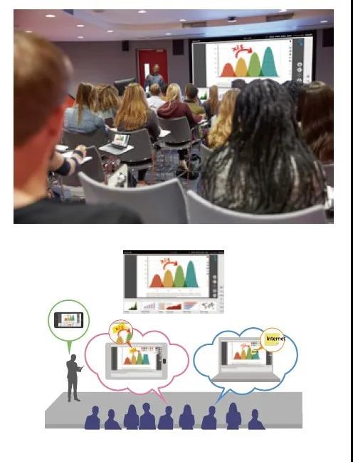 通過(guò)共享每個(gè)人的電子設(shè)備,讓團(tuán)隊(duì)、講師和主持人集思廣益,共同合作。