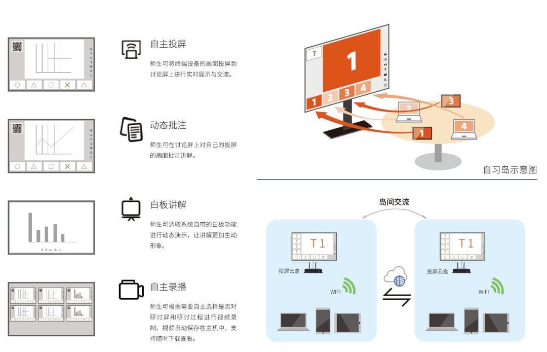 采用軟硬件嵌入式設(shè)計(jì),擁有多項(xiàng)自主技術(shù)知識(shí)產(chǎn)權(quán),高度集成了設(shè)備投屏、動(dòng)態(tài)批注、視頻錄制、視頻處理功能,開(kāi)展智慧自習(xí)不卡頓。