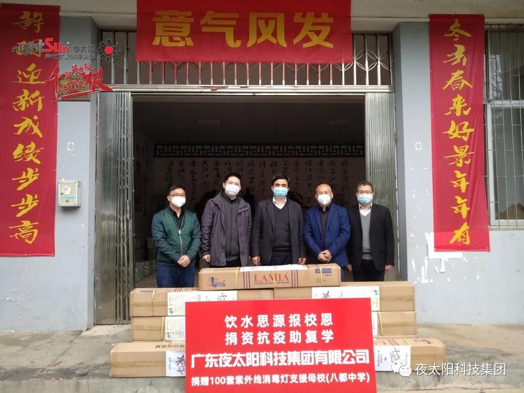 當(dāng)前企業(yè)復(fù)工復(fù)產(chǎn)、學(xué)校順利開學(xué)助社會經(jīng)濟(jì)有序恢復(fù)迫在眉睫。學(xué)校人員密集,防疫工作至關(guān)重要,夜太陽集團(tuán)董事長王志洪了解到學(xué)校防疫物資緊缺,立刻向母校八都中學(xué)校領(lǐng)導(dǎo)聯(lián)系,為八都中學(xué)捐贈了價值30000元的紫外線殺菌消毒燈100臺作為防疫物資,助力學(xué)校抗擊疫情,促開學(xué)與疫情防控兩不誤,解決了該校春季開學(xué)防控物資緊缺的燃眉之急。