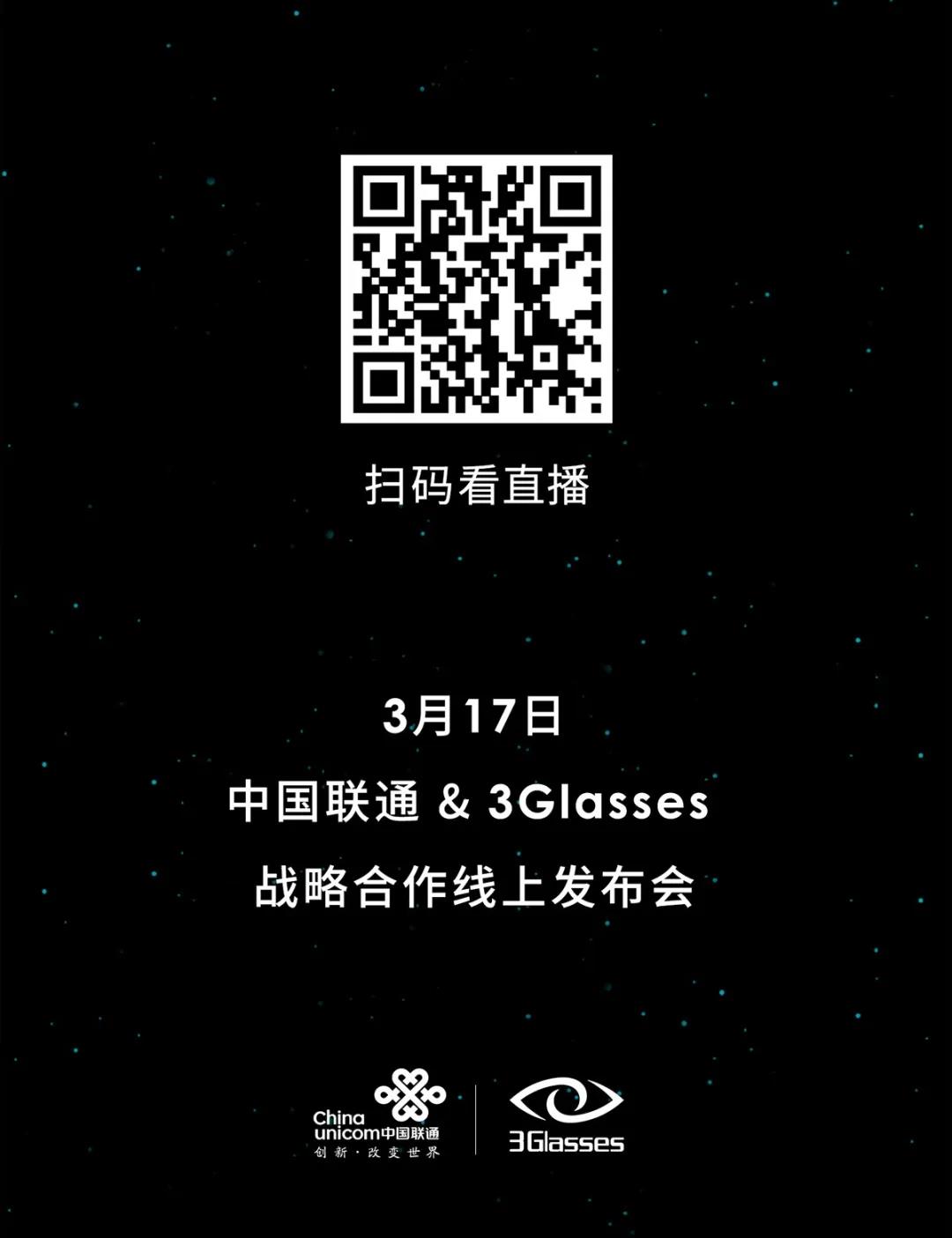 中國聯(lián)通 & 3Glasses 戰(zhàn)略合作線上發(fā)布會 | 3.17 同頻共振,萬物相連