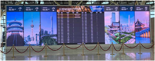 亮點二:對接機場航顯系統(tǒng),并顯示國際重點城市實時天氣情況,彰顯國際 化標(biāo)準(zhǔn);