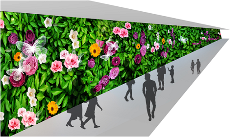 亮點四:互動風(fēng)景畫,大屏中顯示森林場景,當(dāng)有參觀者從屏幕前走過時, 屏幕中對應(yīng)位置的特色元素會產(chǎn)生一些特效,如花朵綻開,蝴蝶飛走等特效;