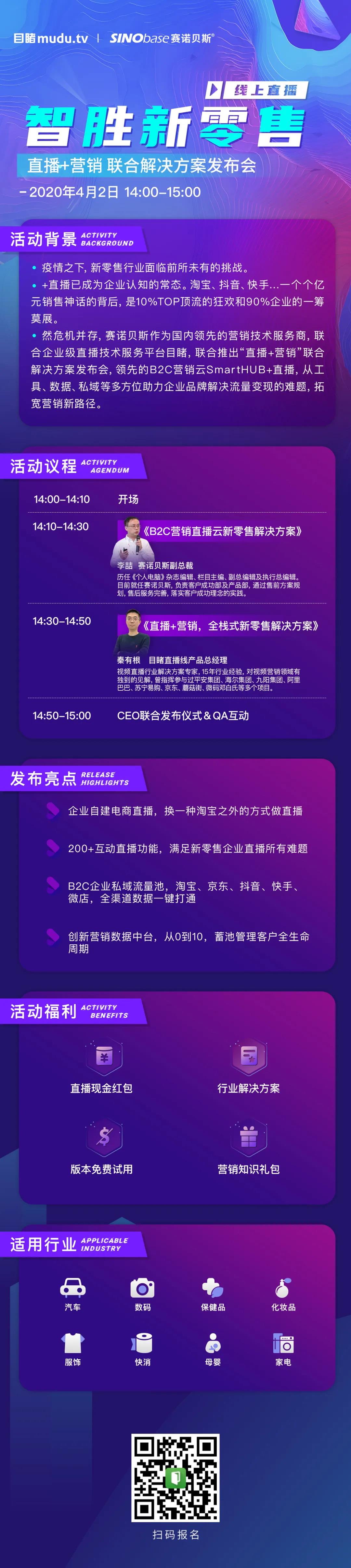 4月2日,“直播+營銷”聯(lián)合解決方案發(fā)布會,國內(nèi)領先的營銷技術服務商的“賽諾貝斯”將聯(lián)合企業(yè)級直播技術服務平臺“目睹”,推出領先的B2C營銷云SmartHUB+直播方案,從工具、數(shù)據(jù)、玩法、私域等多方位助力企業(yè)品牌解決流量變現(xiàn)的難題,拓寬營銷新路徑。